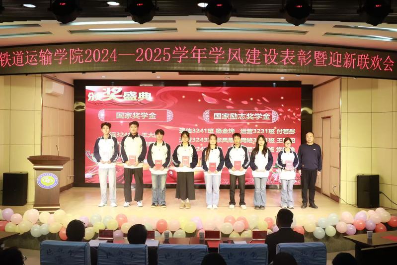 11月25日下午,铁道运输学院于临渭校区学术报告厅召开2024—2025学年学风建设表彰暨迎新联欢会。学生处副处长黄阿岗、学院院长杨江朋、党总支书记李昌锋、学校教务处教务科科长李鹏飞、辅导员、班主任、学院2025级全体学生和2023、2024级学生代表参加本次会议。学工办主任张磊主持会议。